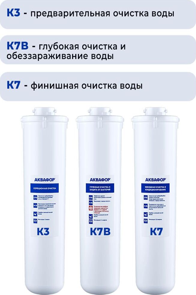 АКВАФОР Комплект картриджей К3-К2-К7В для проточных фильтров (упак.:3шт)