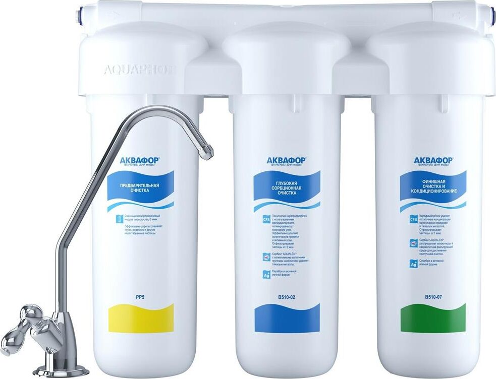 Тип фильтра система "под мойкой" (для мягкой воды) Подключение к водопроводу Назначение обезжелезивание, очистка от свободного хлора Число ступеней очистки 3 Рекомендуемая производительность 2.5 л/мин