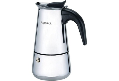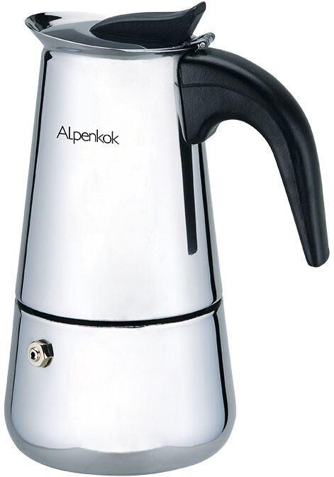 Объем 500мл (9 чашек) Тип гейзерная Для молотого кофе Высококачественная нержавеющая сталь Зеркальная полировка Нейлоновая ручка на корпусе и крышке Цвет ручки: черный Съемный многоразовый фильтр Силиконовая прокладка Предохранительный клапан пара Пригодна для использования на газовых и электрических плитах