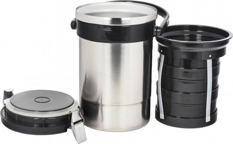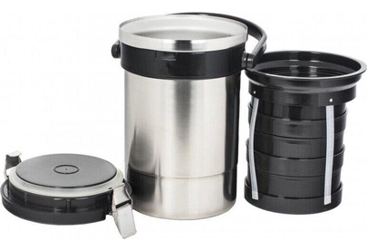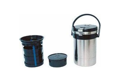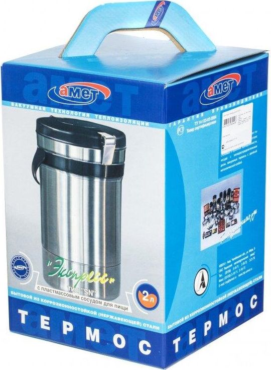 1880 Термос амет экспресс тип SD (с широким горлом) предназначен для сохранения температуры готовых блюд. Термос имеет удобную ручку, двойную вакуумную колбу, сделан из высококачественной нержавеющей стали. Имеет широкую горловину и три контейнера для хранения трёх разных блюд каждый вместимостью 0.4 л. Заводской артикул 1с494. Вместимость термоса 2.0 л. Масса термоса 1.850 кг. Эксплуатационные характеристики 6/74 (час/град С)