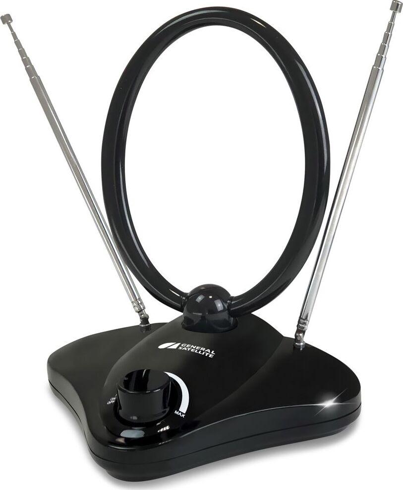 Комнатная всеволновая антенна с усилением. - обеспечивает прием аналоговых и цифровых ТВ сигналов. - регулируемое усиление. - встроенный усилитель с высоким коэффициентом усиления и низким уровнем шума. - регулируемая рамочная антенна, подключенная через беспроводной дистанционный контроллер для лучшего приема UHF. - регулируемая телескопическая антенна для оптимального приема VHF и FM радиосигналов . - специальная конструкция для телевидения с высоким разрешением и различным цифровым эфирным сигналом ( DVB-T, DVB-T2, ISDB-T, DMB-T/H, ATSC), а также для DAB/FM радиовещания. - индикаторы питания ВКЛ/ВЫКЛ