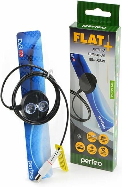 Антенна телевизионная комнатная PERFEO FLAT+ (BAS-5111) DVB-T2 активная, встр. усилитель