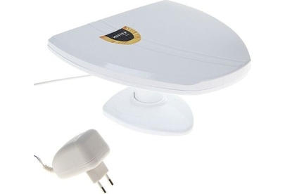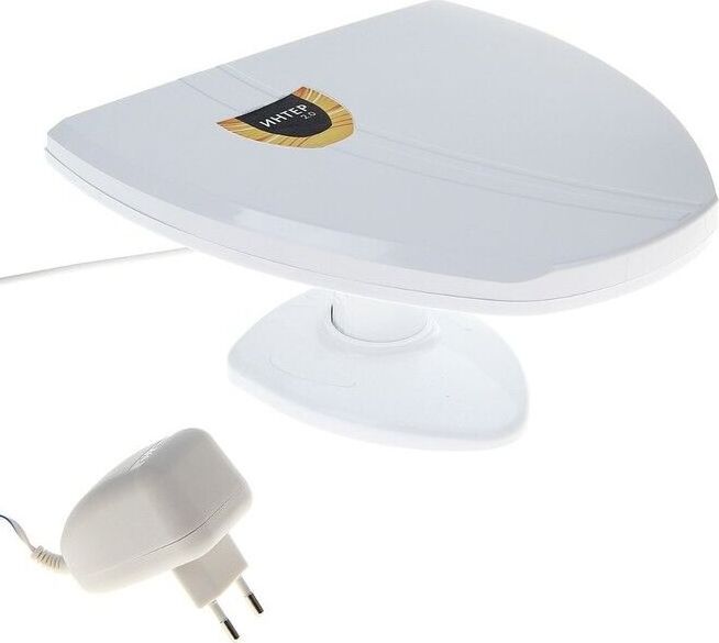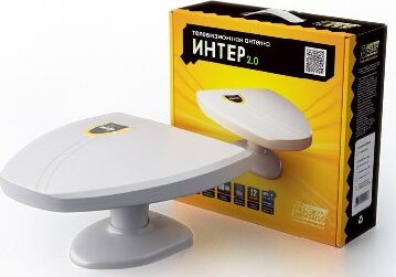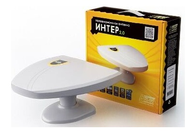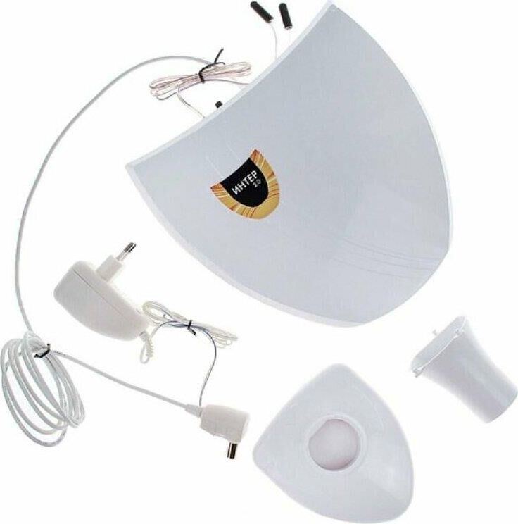 Всеволновая эфирная комнатная антенна «Интер 2.0» , для приема телевизионных программ в диапазонах 1-12 и 21-69 каналов в аналоговом и цифровом (DVB-T и DVB-T2) форматах вещания, коэффициент усиления - 32-42 дБи, блок питания, усилитель, длина кабеля - 1,8 м.