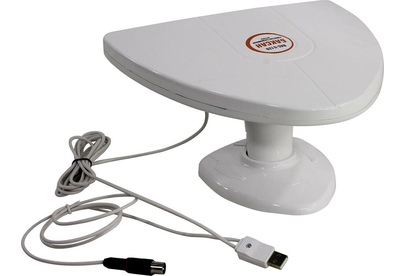 Антенна комнатная, активная, тип антенны: диапазон ДМВ, расстояние до телепередатчика - не более, км: 30, коэффициент усиления, макс., дБи, 21-69 канал: 42, напряжение питания, В: 5-12, волновое сопротивление, Ом: 75, встроенный усилитель , блок питания - в комплекте, длина кабеля, м: 1.8.
