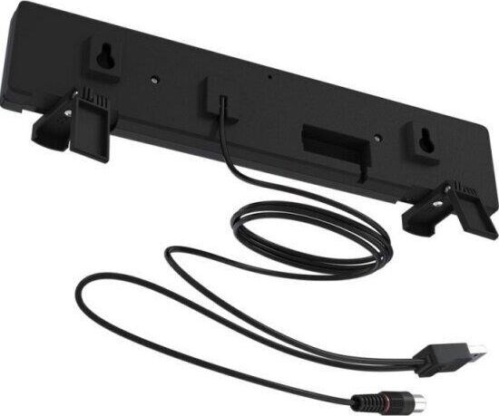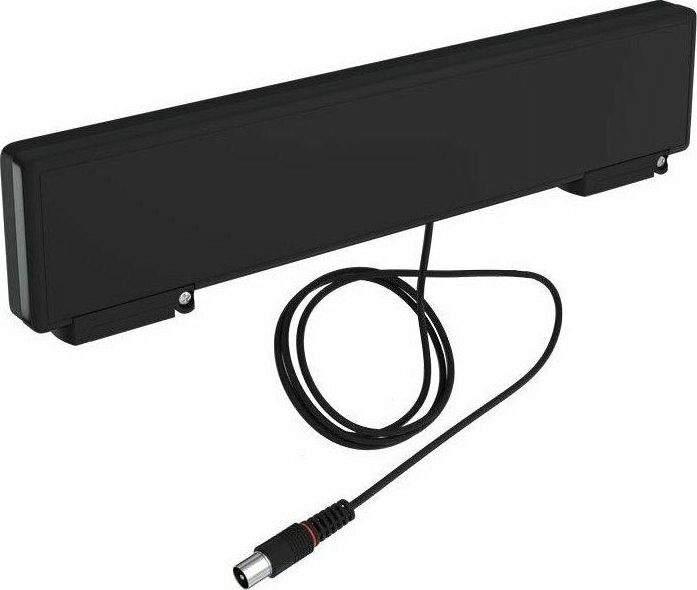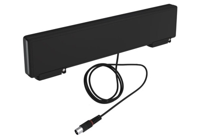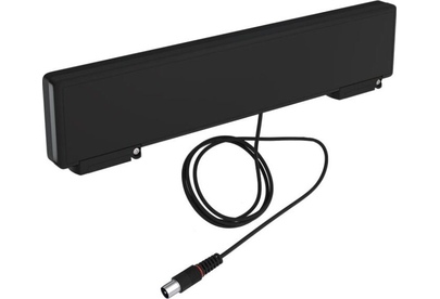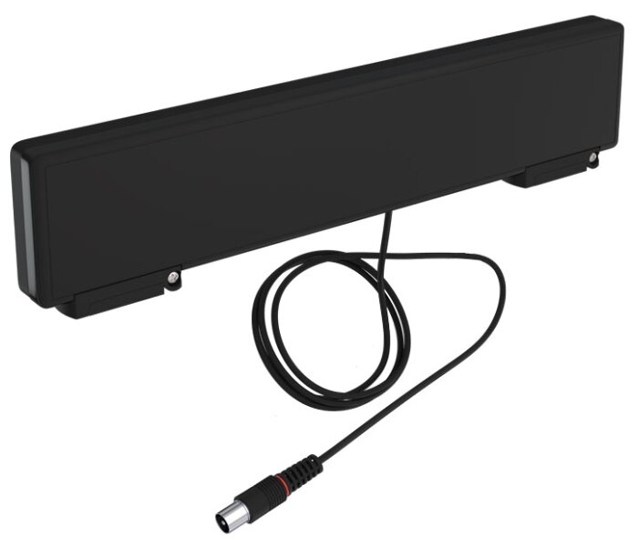 Комнатная цифровая активная антенна, питание от TV или ресивера, коэффициент усиления 35дБи, волновое сопротивление 75 Ом, длина кабеля 1,2 м, размер 315х75х32 мм, масса 0,23 кг.