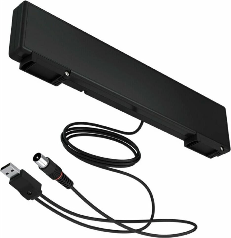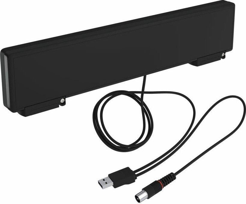 Комнатная цифровая активная антенна, питание от USB-инжектора, коэффициент усиления 35дБи, волновое сопротивление 75 Ом, длина кабеля 1,2 м, размер 315х75х32 мм, масса 0,23 кг.
