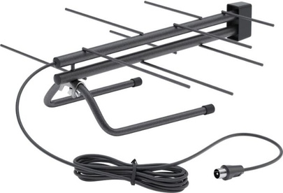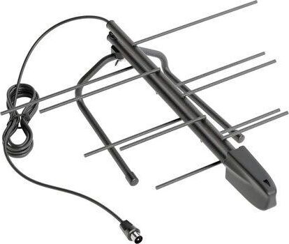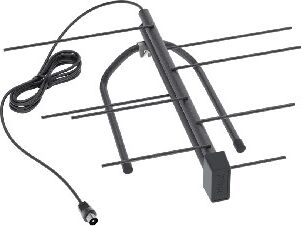 Телевизионная комнатная антенна, активная, для приема аналогового и цифрового телевидения, коэффициент усиления, макс., дБи, 21-69 канал: 17, волновое сопротивление, Ом: 75, питание осуществляется напрямую от антенного разъема цифрового приемника (ресивера), напряжение питания, В: 5, размеры в сборе, мм: 270х350х107.
