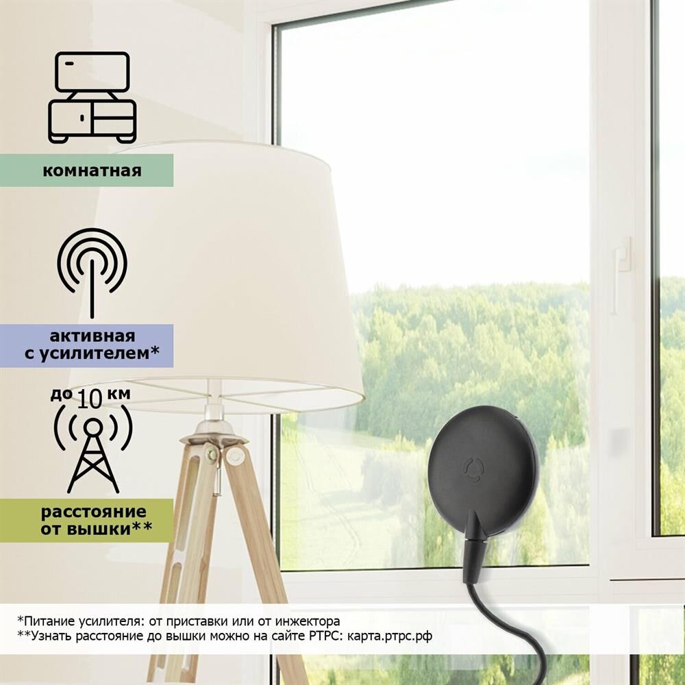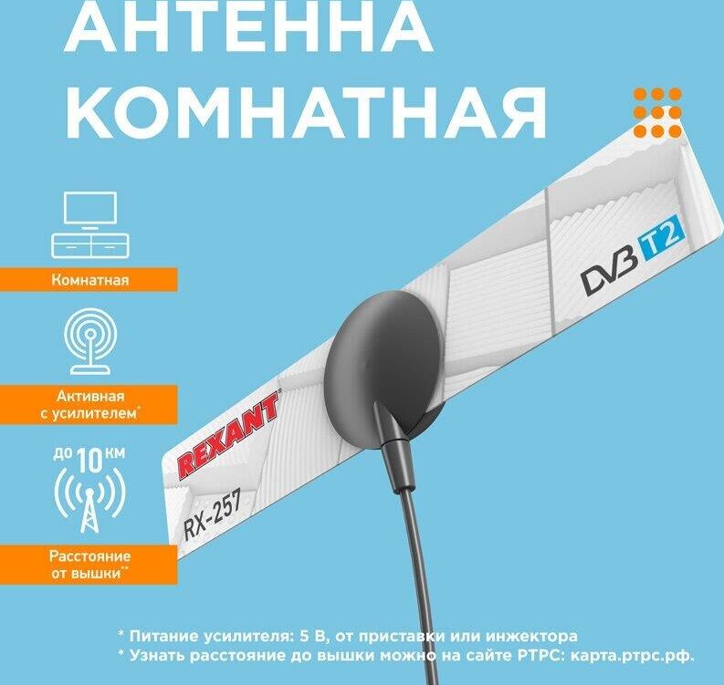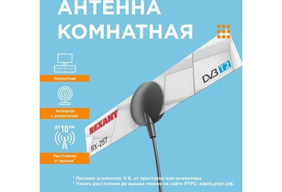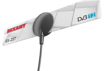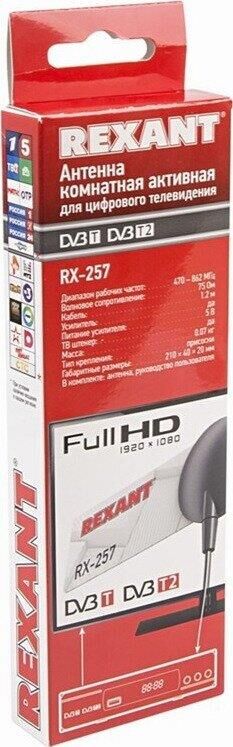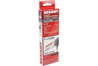 REXANT ТВ АНТЕННА КОМНАТНАЯ «АКТИВНАЯ» ДЛЯ ЦИФРОВОГО ТЕЛЕВИДЕНИЯ DVB-T2 НА ПРИСОСКЕ, RX-257