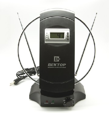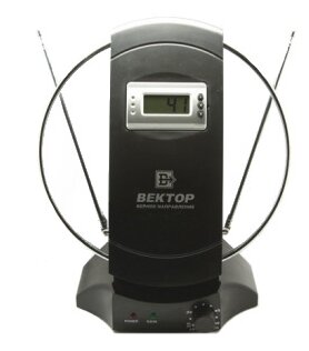 Антенна комнатная, диапазоны принимаемых частот: FM 88-108 МГц VHF 40-230 МГц; UHF 470-862 МГц; коэффициент усиления: 0-36 дБ (с регулировкой).
