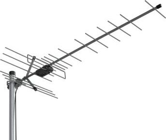 Антенна наружная, активная, DVB-T - DVB-T2, коэффициент усиления не менее 28-33дБ, коэфициент стоячей волны 2, волновое сопротивление 75Ом, 18 элементов, напряжение питания усилителя 5±0.3В, ток потребления усилителя 70мА, источник питания в комплект не входит.