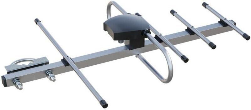 Наружная пятиэлиментная пассивная алюминиевая ТВ антенна ДМВ/DVB-T2. Диапазон 21-69 канал.Коэффициент усиления - 8 Дб. Размер 400*340*80, Поставляется в пакете.