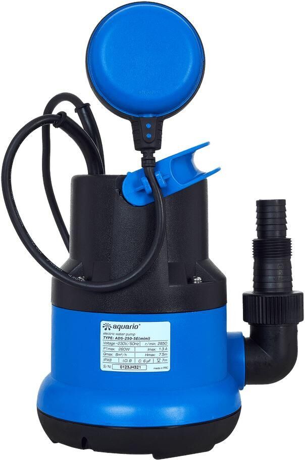 Тип погружной. Качество воды грязная. Мат. корпуса насоса пластик. Максимальный напор 7 м. Производительность Qmax — 130 л/мин. Размер фильтруемых частиц 5 мм. Длина кабеля 3 метра. Глубина погружения под воду 7 метров. Диаметр выходного отверстия 1”, 1/4”. Мощность двигателя 260 Вт. Температура пер. воды от +1 до +40 °C. Напряжение 220 ± 10% В.