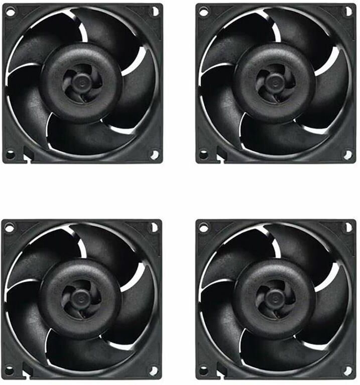 Производитель ARCTIC Модель Arctic Cooling S8038-10K Код производителя ACFAN00291A Количество вентиляторов в комплекте 4 шт Размер вентилятора 80 x 80 мм Толщина вентилятора 38 мм Тип подшипника Шариковый, двойной, качения (шарикоподшипник) Антивибрационная прокладка нет Максимальная скорость вращения 10000 об/мин Минимальная скорость вращения 500 об/мин Максимальный поток воздуха 102, куб. фут/мин Максимальное давление воздуха 51, мм вод. ст.