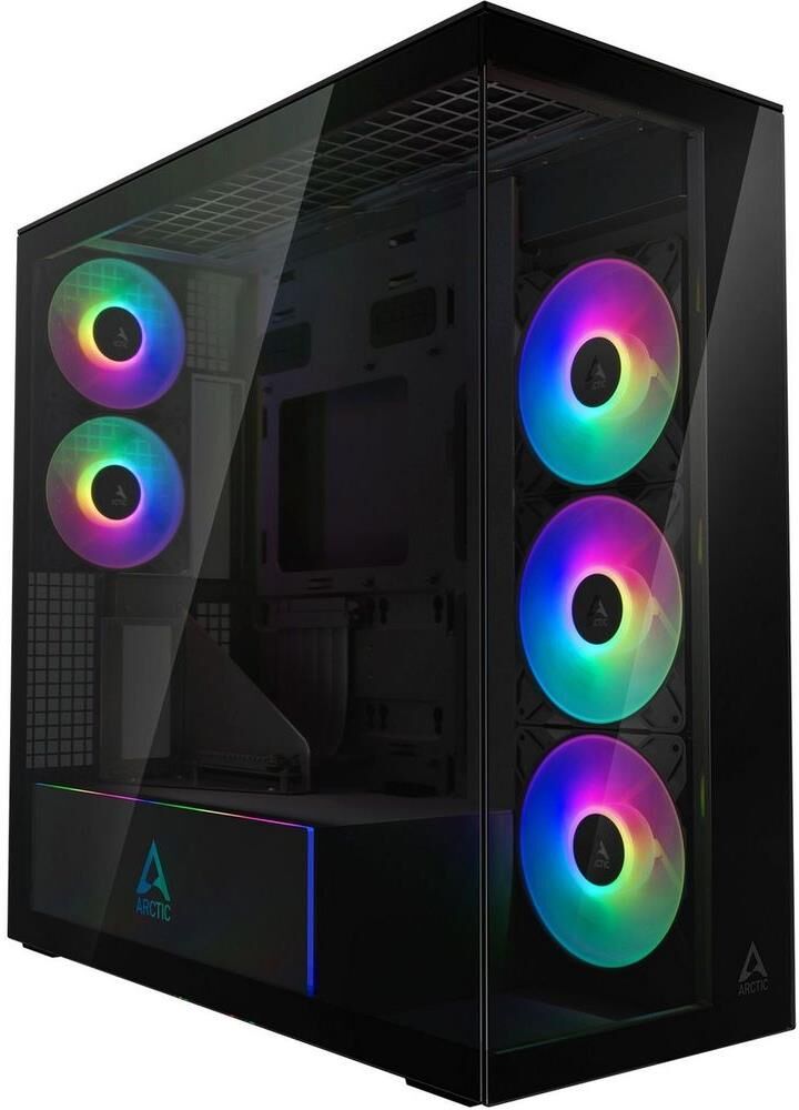 **Корпус для ПК Arctic Cooling ARCTIC Xtender VG (Mirror Black) (арт. ACPCC00019A)** Преобразите свой игровой уголок с корпусом Arctic Cooling ARCTIC Xtender VG! Этот стильный и функциональный корпус в чёрном цвете станет отличным выбором для сборки мощного ПК. **Почему стоит выбрать ARCTIC Xtender VG?** * **Универсальность:** поддерживает материнские платы от Mini-ITX до E-ATX — подойдёт для самых разных конфигураций. * **Достаточно места для комплектующих:** максимальная высота кулера для CPU — 170 мм, длина видеокарты — 482 мм, длина блока питания — 318 мм. * **Возможность создания красочного освещения:** вентиляторы с RGB-подсветкой позволят настроить идеальное освещение вашего ПК. * **Прозрачная панель:** продемонстрируйте внутренности вашего ПК — прозрачная панель позволит показать всю красоту вашей сборки. * **Достаточно слотов для расширения:** 7 слотов для карт расширения дадут возможность подключить все необходимые устройства. Форм-фактор Middle Tower и полный профиль слотов расширения делают этот к