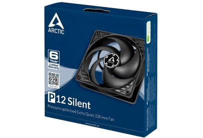 **Вентилятор Arctic Cooling P12 Silent** — это высококачественный корпусной вентилятор, который обеспечивает эффективное охлаждение компьютера. Он имеет следующие характеристики: * Размеры вентилятора: 120 x 120 мм. * Скорость вращения: 800–1800 об/мин. * Воздушный поток: до 56 CFM. * Уровень шума: не более 22,5 дБ. Вентилятор оснащён гидродинамическим подшипником, который обеспечивает долгий срок службы и низкий уровень шума. Вентилятор имеет чёрную окраску корпуса и лопастей, что делает его стильным дополнением к любому компьютеру. **Преимущества вентилятора Arctic Cooling P12 Silent:** 1. **Тихая работа.** Благодаря низкой скорости вращения и гидродинамическому подшипнику, вентилятор работает очень тихо, обеспечивая комфортное использование компьютера. 2. **Эффективное охлаждение.** Вентилятор обеспечивает мощный воздушный поток, который эффективно охлаждает компоненты компьютера, предотвращая их перегрев. 3. **Долговечность.** Гидродинамический подшипник обеспечивает длительный срок службы вентилятора без