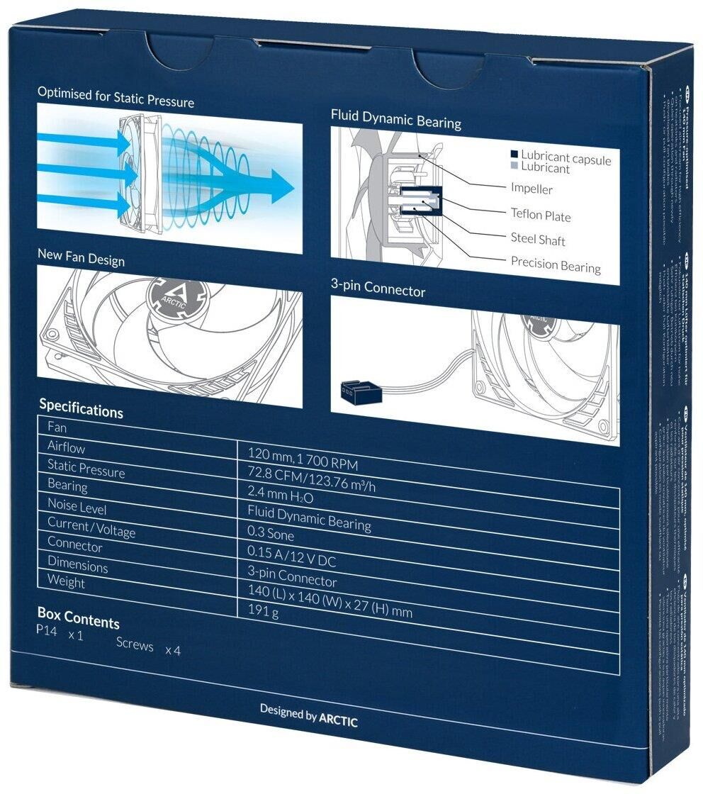 ARCTIC COOLING Вентилятор P14 5шт, 140мм, 3-pin, 1700об/мин, 22.5 - 24.5 дБ, черный, Ret [acfan00136