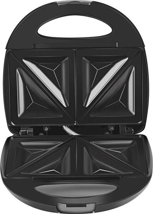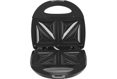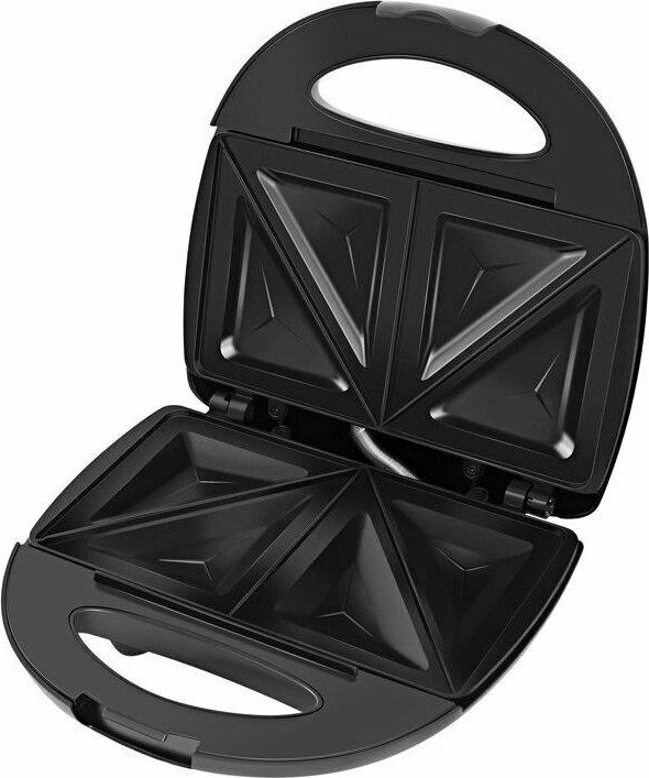 Мощность 750 Вт. Материал корпуса - термостойкий пластик, декорированный хромир. сталью. Антипригар. покрытие сэндвичных форм. Сэндвичные формы на 4 ломтика, с выступающими бортиками, препятствующими вытеканию начинки. Двухпозиционный фиксатор крышки.