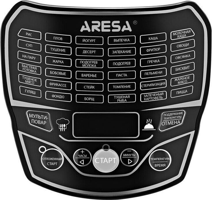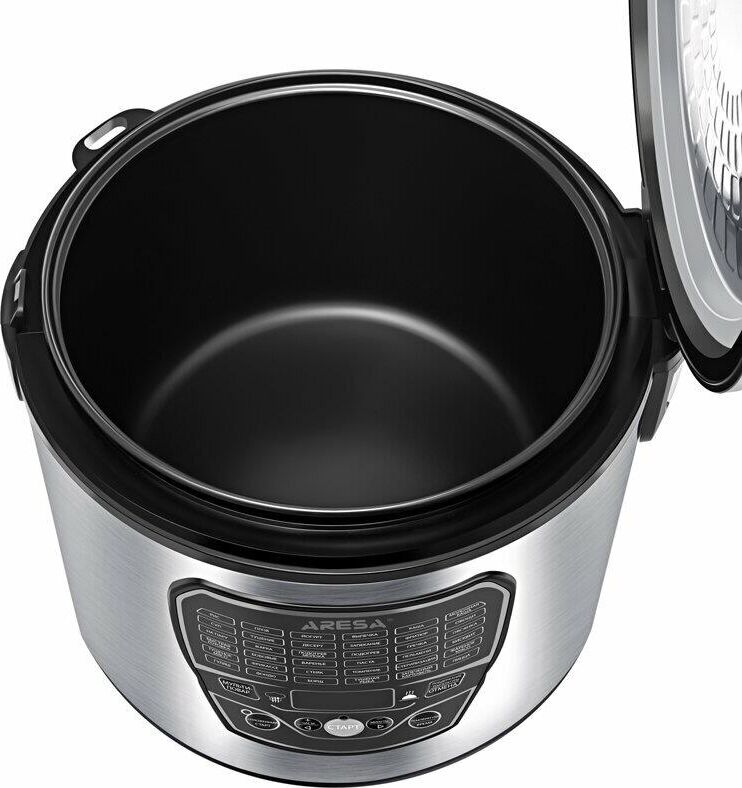 ARESA AR-2010 Мощность: 790-930 Вт Съёмная чаша (объём 5 л) 36 программ "Рис, Суп, На пару, Быстрая готовка, Тушеное мясо, Гуляш, Плов, Тушение, Жарка, Бобовые, Фрикассе, Фондю, Йогурт, Десерт, Подогрев молока, Варенье, Стейк, Борщ, Выпечка, Запекание, Подогрев, Паста, Томление, Тушеная рыба, Каша, Фритюр, Гречка, Пельмени, Стерилизация, Запеченый картофель, Молочная каша, Овощи, Овсянка, Бисквит, Жареное мясо, Пицца " Программа «Поддержание температуры» Программа «Мультиповар» (при температуре 100°С задаётся время от 2 мин до 15 часов) Регулировка времени и температуры приготовления Функция отложенного старта (установка таймера до 24 ч) LED дисплей Защита от перегрева Прочный корпус из нержавеющей стали Ручка для переноски