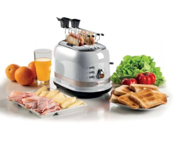 Функциональный тостер Moderna 0149 с изысканным дизайном сделает ваш завтрак идеальным. Тостер имеет 3 режима нагрева: тост, разморозка, разогрев и 6 настроек степени поджаривания для равномерного подрумянивания хлеба со всех сторон. Он оснащен автоматической системой центрирования для идеального поджаривания хлеба или сэндвича. Тостер Ariete Moderna 0149 представляет собой объект дизайна, который сочетает в себе эстетику и отличную функциональность. С его помощью вы быстро сможете создать именно свой бутерброд для безупречного завтрака. Материал корпуса - металл/пластик; Количество отделений - 2; Функция подогрева - да; Автоцентрирование тостов - да; Мощность - 685-815 Вт; Поддон для крошек - съемный; Количество степеней прожаривания - 6; Функция разморозки - да; Автоподъем тостов - да.