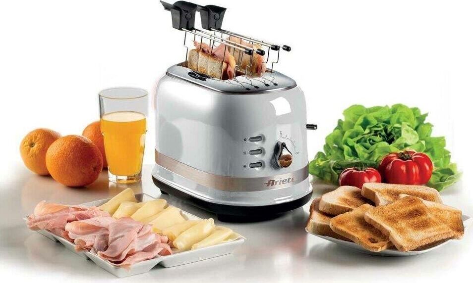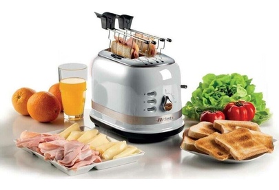 Функциональный тостер Moderna 0149 с изысканным дизайном сделает ваш завтрак идеальным. Тостер имеет 3 режима нагрева: тост, разморозка, разогрев и 6 настроек степени поджаривания для равномерного подрумянивания хлеба со всех сторон. Он оснащен автоматической системой центрирования для идеального поджаривания хлеба или сэндвича. Тостер Ariete Moderna 0149 представляет собой объект дизайна, который сочетает в себе эстетику и отличную функциональность. С его помощью вы быстро сможете создать именно свой бутерброд для безупречного завтрака. Материал корпуса - металл/пластик; Количество отделений - 2; Функция подогрева - да; Автоцентрирование тостов - да; Мощность - 685-815 Вт; Поддон для крошек - съемный; Количество степеней прожаривания - 6; Функция разморозки - да; Автоподъем тостов - да.