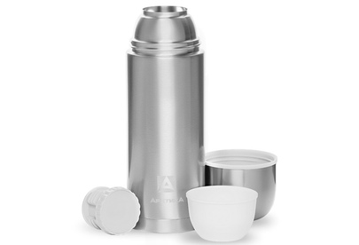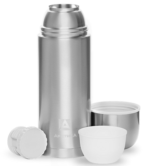 Термос компактного размера, с узким горлом, глухая пробка с термоизолятором, покрытие лак, дополнительная чаша