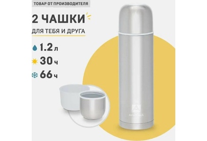 Термос компактного размера, с узким горлом, глухая пробка с термоизолятором, покрытие лак, дополнительная чаша