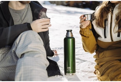 Термос с суперузким горлом,глухая пробка с термоизолятором, молотковое покрытие, дополнительная чаша