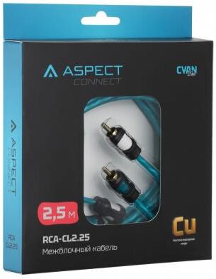 ASPECT Межблочный кабель RCA-CL2.25, Cyan Line, витая пара, OFC, 1 экран, 2RCA-2RCA, 2.5м