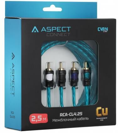 ASPECT Межблочный кабель RCA-CL4.25, Cyan Line, витая пара, OFC, 1 экран, 4RCA-4RCA, 2.5м
