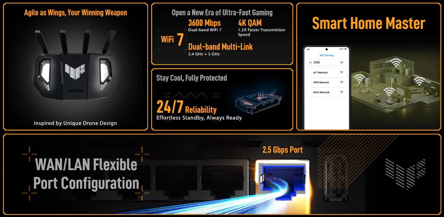 ASUS Маршрутизатор TUF-BE3600 (BE3600, 2x2500Mbs WAN/LAN, 3x1000Mbs LAN, USB 3.2) (TUF-BE3600)
