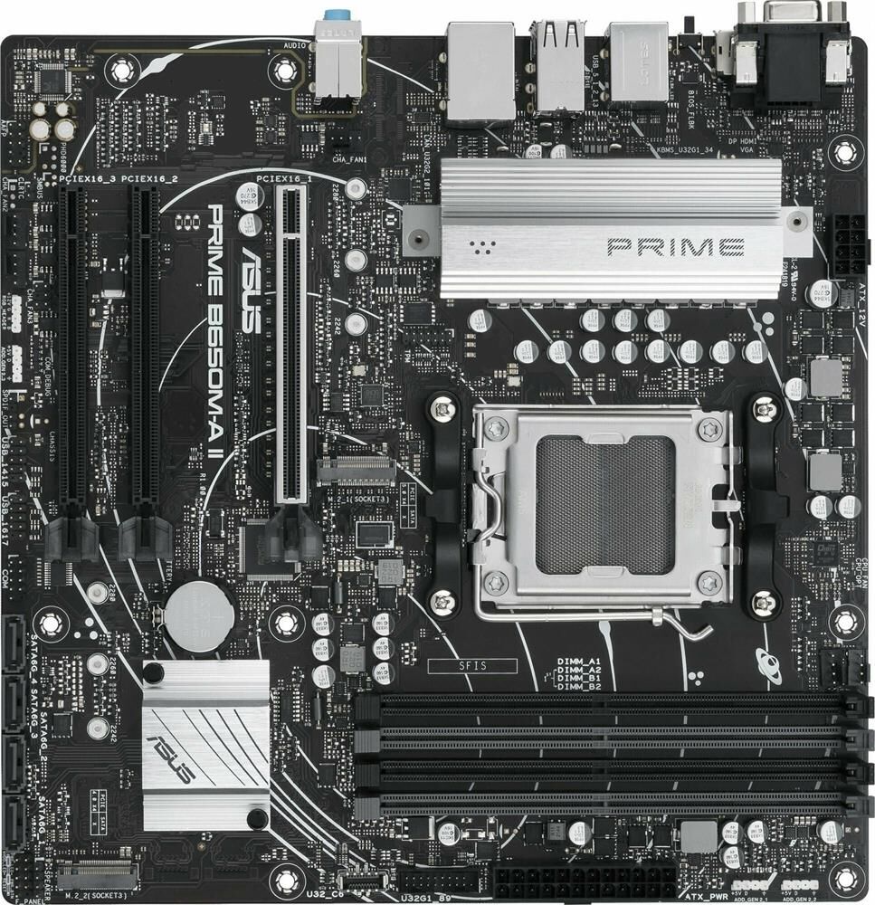 ASUS Материнская плата PRIME B650M-A WIFI II Socket AM5 AMD B650 4xDDR5 mATX AC`97 8ch(7.1) 2.5Gg RA