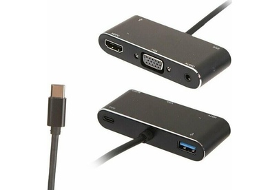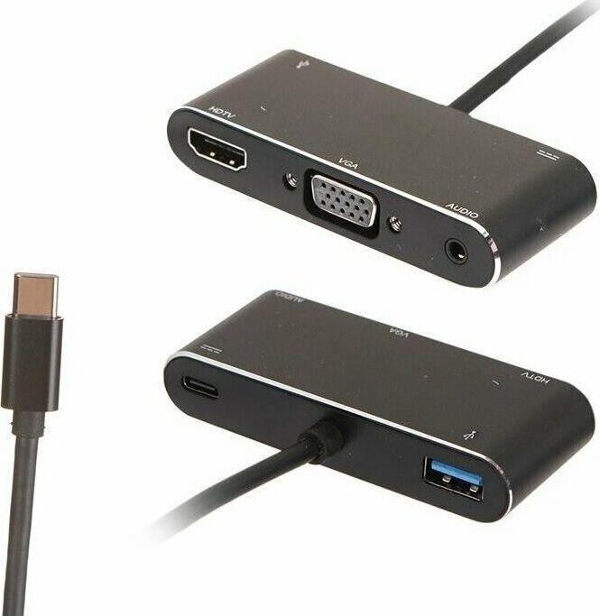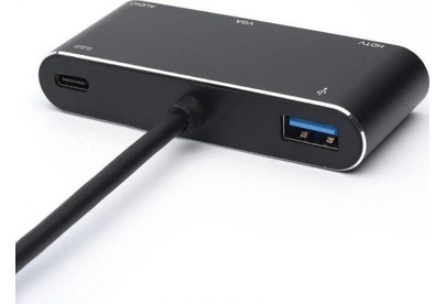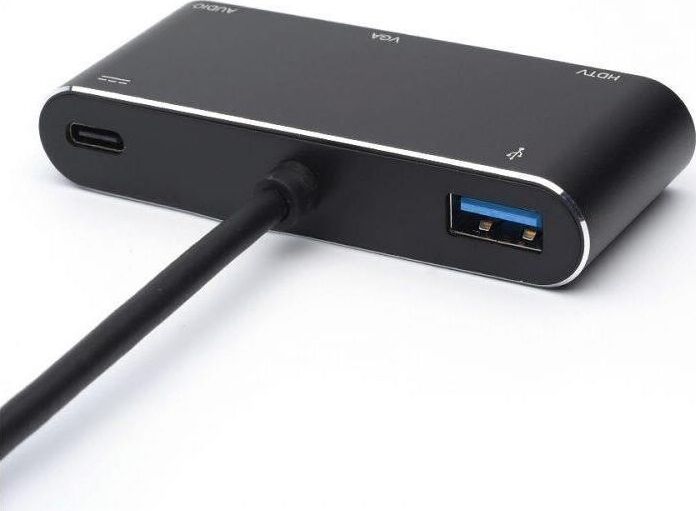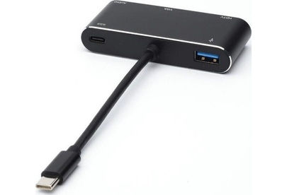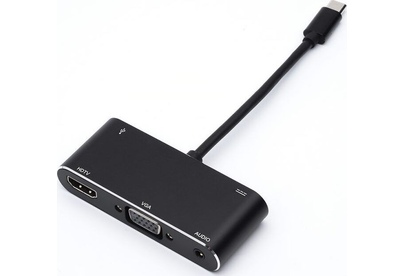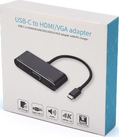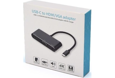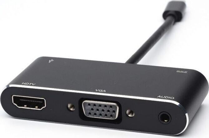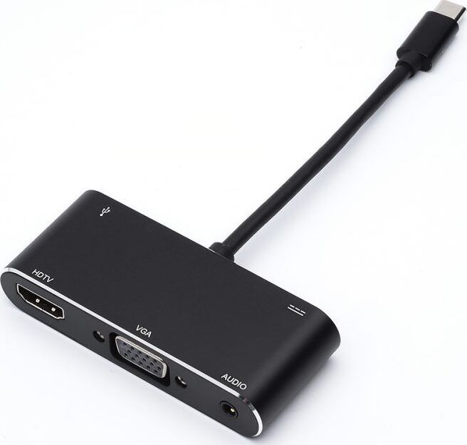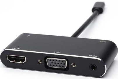 Переходник (Type-C HDMI+VGA+USB) + Аудио предназначен для подключения монитора или телевизора с интерфейсом VGA или HDMI к устройству с выходом Type-C 3.1. Cкорость передачи данных 8.16 Гбит/с. Поддерживаемое разрешение Full HD 1080p@60Hz. Длина - 0.1м.