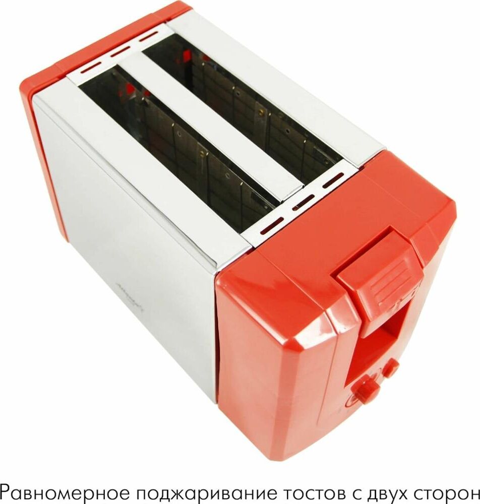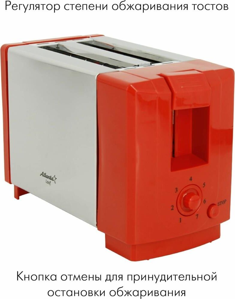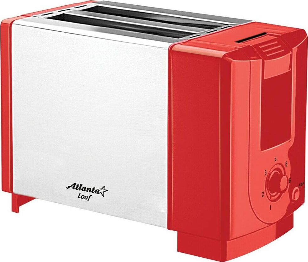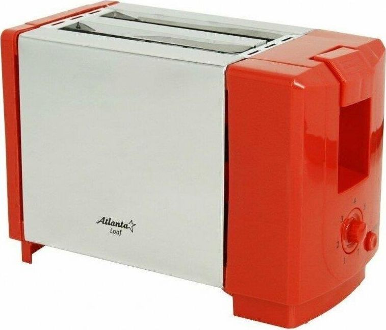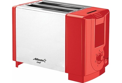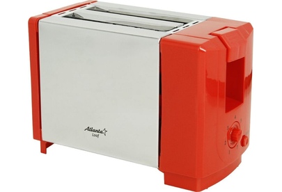 ATLANTA ATH-1031 (RED) Корпус из нержавеющей стали На два ломтика хлеба Регулятор времени поджаривания Поддон для крошек Автоматическое отключение Защита от перегрева Номинальная мощность 750 Вт Кабель питания 85см 230 B ~ 50 Гц