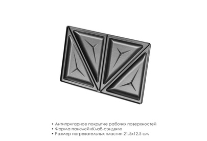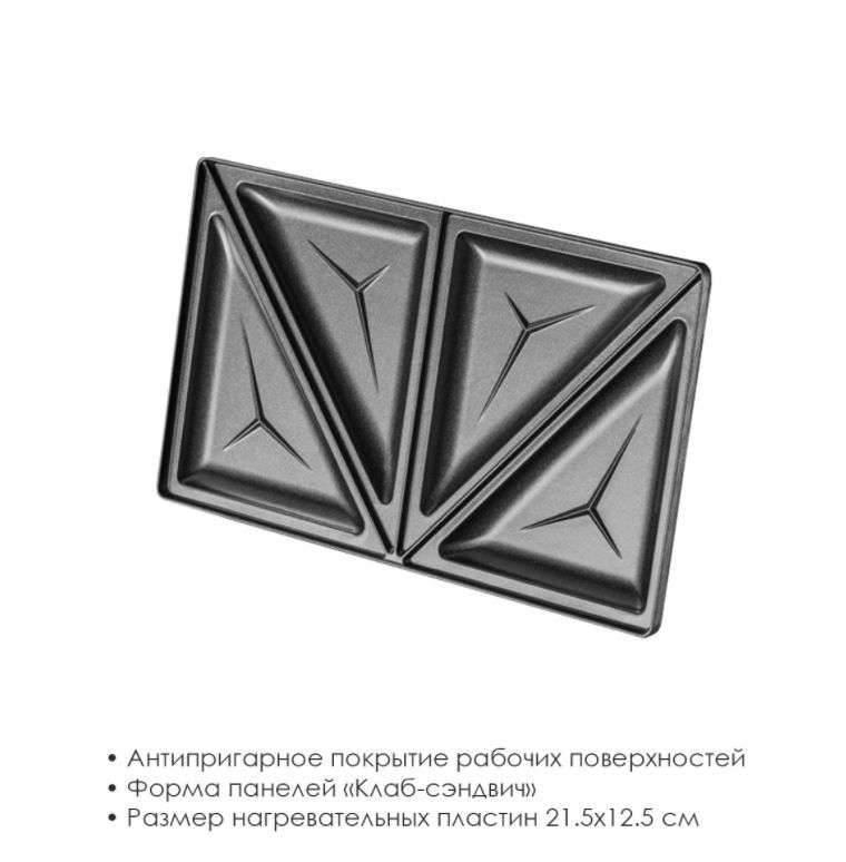антипригарное покрытие, пластины « Клаб» , фиксатор, хранение в вертикальном положении, защита от перегрева, световой индикатор работы, световой индикатор готовности использования, дополнительная термоизоляция корпуса