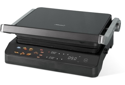 Размер панелей Цифровая, сенсорная панель управления Раздельная установка температуры панелей: 90 - 230°С Быстрые рецепты Антипригарное покрытие Съемные панели 29,6 X 21,8 см Открытие панелей на 180° Регулируемый термостат: 90 - 230°С Световой индикатор нагрева Световой индикатор работы Контейнер для сбора масла Корпус из нержавеющей стали и термостойкого пластика Защита от перегрева Мощность 2000 В 230 B ~ 50 Гц