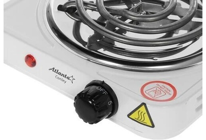 Номинальная мощность 1000 Вт Стальной корпус с эмалевым покрытием Спиральный ТЭН диаметром 14 см Регулятор температуры Индикатор работы Защита от перегрева Кабель питания 60 см 230 B ~ 50 Гц
