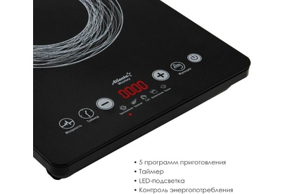 Полированная стеклокерамическая поверхность 280*350 мм. 5 программ приготовления пищи. Сенсорное управление. Высококачественного биполярный IGBT транзистор производства Siemens. Сверхширокий диапазон напряжения. Таймер включения и выключения. Функция замера мощности и напряжения. Защита от перегрева. Номинальная мощность 2000 Вт. 230 B ~ 50 Гц.