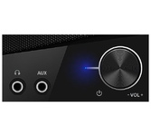 Акустическая система, суммарная выходная мощность (RMS) 6 Вт, светодиодная подсветка, мощность сателлитов (RMS) 2х3 Вт, размер динамиков сателлитов 2х2,5", диапазон частот 270–200000 Гц, входная чувствительность - 820мВ ±50 мВ, разъем для наушников, вход для микрофона, тип интерфейса - 3,5-мм джек, питание от USB, 5 В.
