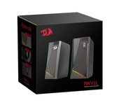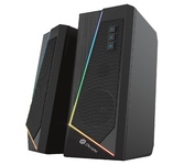 Геймерские компьютерные колонки со светодиодной подсветкой и с функцией Bluetooth 5.3. Для удобства пользователя панель управления вынесена на проводной пульт, в котором расположились регулятор громкости, разъемы для подключения гарнитуры, кнопка управления режимами подсветки (9 режимов), переключения режимов AUX/Bluetooth и включения/ выключения питания.
