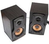 Акустика 2.0, суммарная мощность 8 Вт, диапазон частот 150Гц - 20KГц, стерео-вход AUX INPUT, тип электропитания - USB, материал корпуса - дерево, габаритные размеры - 108х185х110 мм.