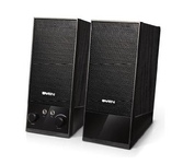 Акустическая система 2.0, выходная мощность (RMS), Вт 6 (2 х 3), частотный диапазон, Гц - 100 – 20 000, размеры динамиков, мм - O 53, напряжение питания USB / DC 5V, материал корпуса - дерево (MDF), регулировка уровня громкости, разъемы для подключения наушников и микрофона.