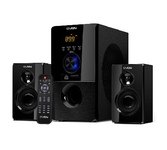 65 Вт, компоненты - сабвуфер, два сателлита, встроенные: усилитель, FМ радио, блок питания, частотный дапазон от 20 Гц, два стереовхода (2RCA): "AUX" и "DVD", USB порт для флэш-накопителей, слот для SD карт, пульт ДУ, корпус MDF, (В*Ш*Г) 325*215*376.