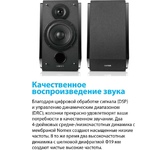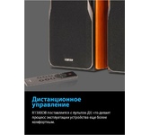 Колонка (пара). Выходная мощность: 21Вт+21Вт. 2 динамика в каждой колонке. Соотношение сигнал/шум: 25 дБ. Частотная характеристика: 55 Гц - 20 кГц. Входы: AUX, ПК, Bluetooth. В комплекте: пульт ДУ, кабель RCA-RCA, кабель 3.5мм-RCA, колоночный кабель, инструкция пользователя.