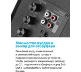 Колонка (пара). Выходная мощность: 21Вт+21Вт. 2 динамика в каждой колонке. Частотная характеристика: 55 Гц-20кГц. Входы: оптический, коаксиальный, линейный, Bluetooth. В комплекте: пульт ДУ, колночный кабель, кабель RCA-RCA, кабель 3.5мм-RCA, волоконно-оптический входной кабель, инструкция пользователя.