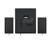 Мультимедийная акустическая система , BLUETOOTH, cуммарная мощность (RMS) - 70 Вт, частотный диапазон, Гц : сабвуфер: 40 – 150,сателлиты: 150 – 20 000, воспроизведение с USB FLACH и SD CARD памати, встроенное FМ-радио, LED-дисплей, пульт управления, материал корпуса и сателитов дерево - MDF, размеры изделия - (мм) сабвуфер: 250 х 340 х290, сателлиты: 105 х200 х 100.