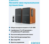 Колонка (пара). Выходная мощность: 21Вт+21Вт. 2 динамика в каждой колонке. Частотная характеристика: 52Гц-20кГц. Входы: линейный 2 шт. В комплекте: пульт ДУ, колоночный кабель, кабель RCA-RCA, кабель 3.5мм-RCA, инструкция пользователя.