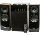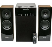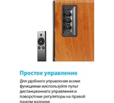 Акустическая система, Bluetooth, мощность (Вт) - 80, частотный диапазон (Гц-Гц) от 40 Гц, динамик(и) - 6,5", мощность (Вт) - 50, частотный диапазон (Гц-Гц) - от 40 Гц,стереовход (2RCA) на задней стенке; FM-радиоприемник, два джека для караоке микрофонов, оптический S/PDIF вход, коаксиальный S/PDIF вход, USB порт для флэш-накопителей; слот ридера SD карт, пульт ДУ, корпус - MDF, габаритные размеры (В*Ш*Г, мм) - 140*130*40, цвет - коричневый.