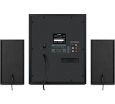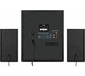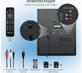 Акустическая система, Bluetooth, мощность (Вт) - 80, частотный диапазон (Гц-Гц) от 40 Гц, динамик(и) - 6,5", мощность (Вт) - 50, частотный диапазон (Гц-Гц) - от 40 Гц,стереовход (2RCA) на задней стенке; FM-радиоприемник, два джека для караоке мирофонов, оптический S/PDIF вход, коаксиальный S/PDIF вход, USB порт для флэш-накопителей; слот ридера SD карт, пульт ДУ, корпус - MDF, габаритные размеры (В*Ш*Г, мм) - 140*130*40, цвет - черный