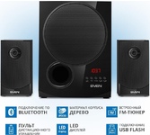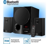 Мультимедийная акустическая система , BLUETOOTH, cуммарная мощность (RMS) - 70 Вт, частотный диапазон, Гц : сабвуфер: 40 – 150,сателлиты: 150 – 20 000, воспроизведение с USB FLACH и SD CARD памати, встроенное FМ-радио, LED-дисплей, пульт управления, материал корпуса и сателитов дерево - MDF, размеры изделия - (мм) сабвуфер: 250 х 340 х290, сателлиты: 105 х200 х 100.