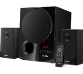 Колонка (пара). Выходная мощность: 21Вт+21Вт. 2 динамика в каждой колонке. Соотношение сигнал/шум: 25 дБ. Частотная характеристика: 55 Гц - 20 кГц. Входы: AUX, ПК, Bluetooth. В комплекте: пульт ДУ, кабель RCA-RCA, кабель 3.5мм-RCA, колоночный кабель, инструкция пользователя.